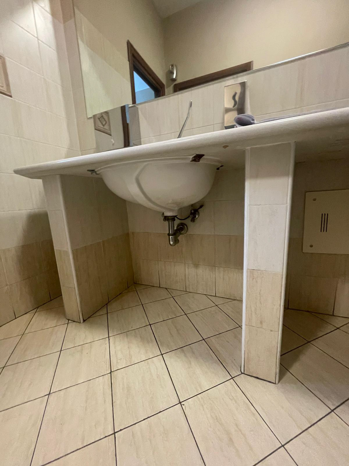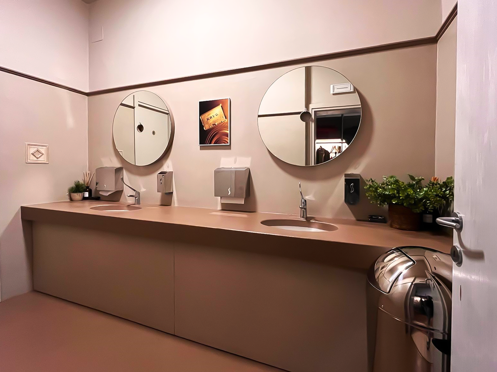 Abbiamo applicato una resina tecnica su piastrelle esistenti, sia a pavimento che a parete, evitando così demolizioni invasive. Nelle zone in cui le piastrelle terminavano.