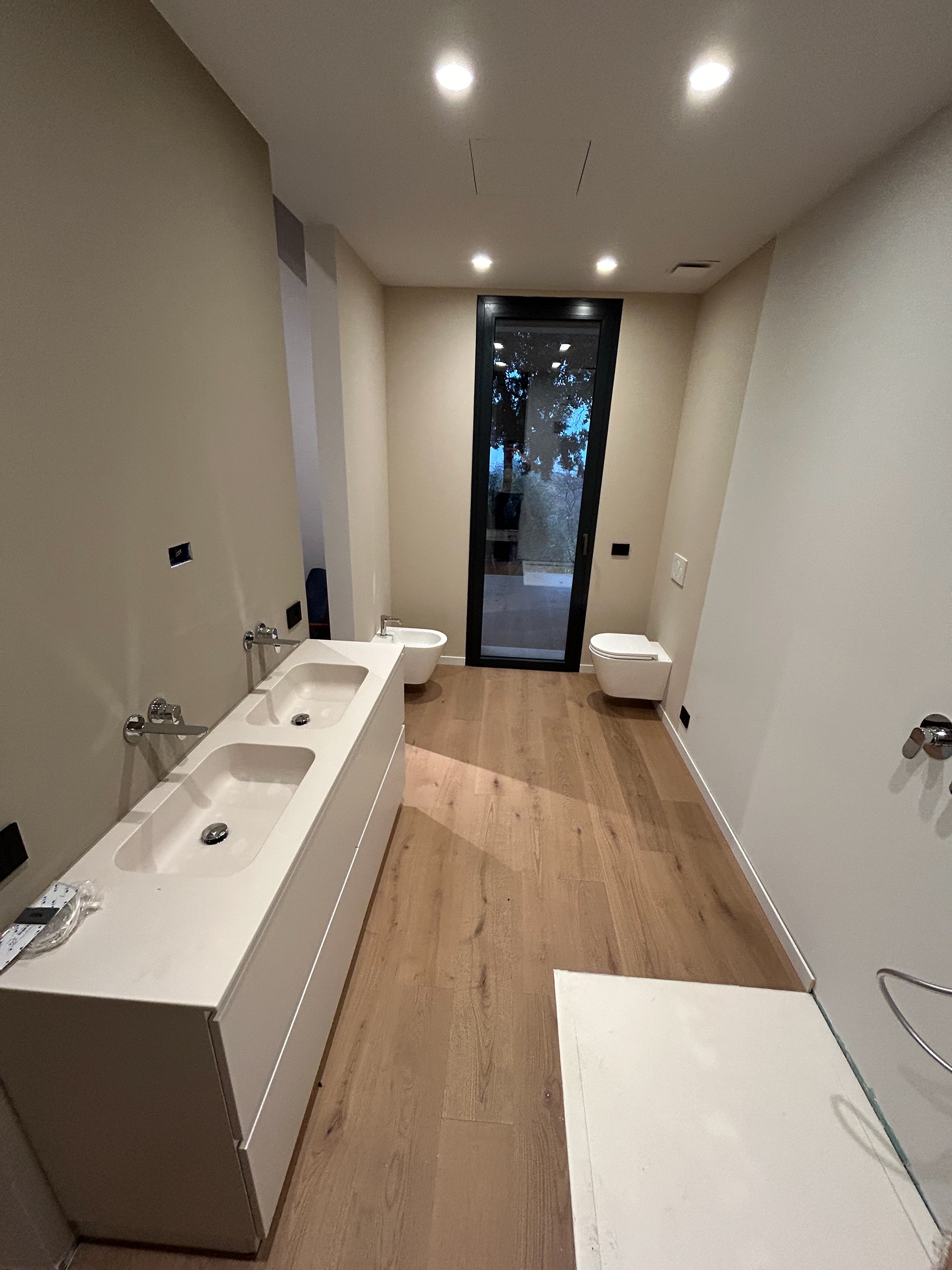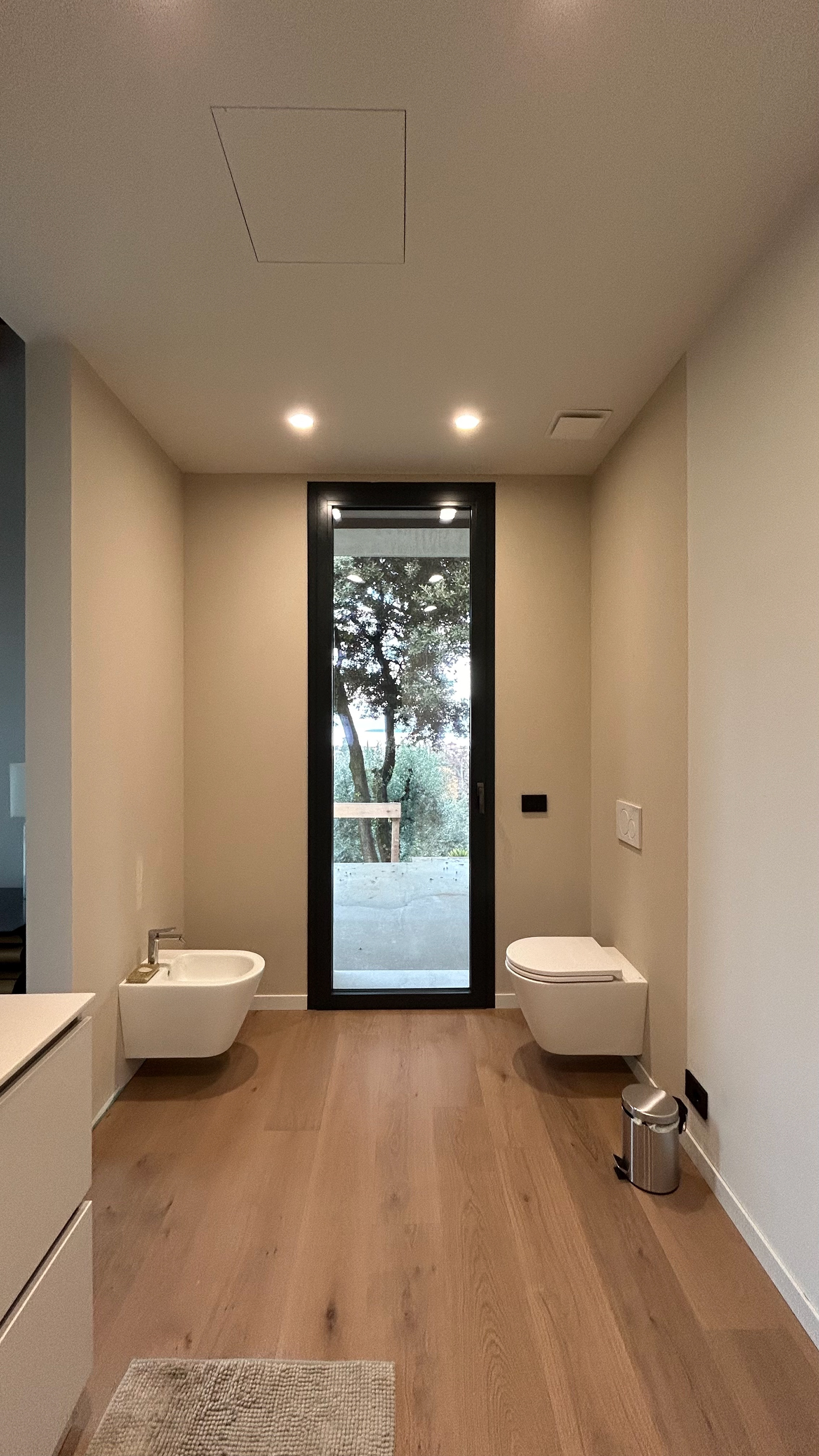 Il bagno della camera padronale offre un’oasi di comfort e privacy, con sanitari separati per garantire praticità e funzionalità.