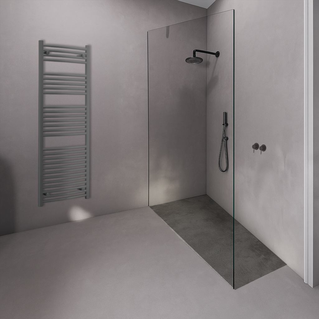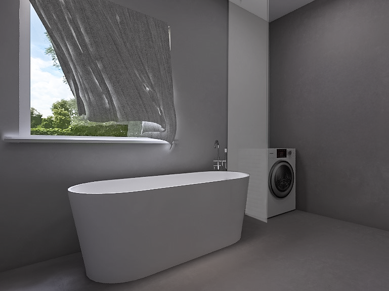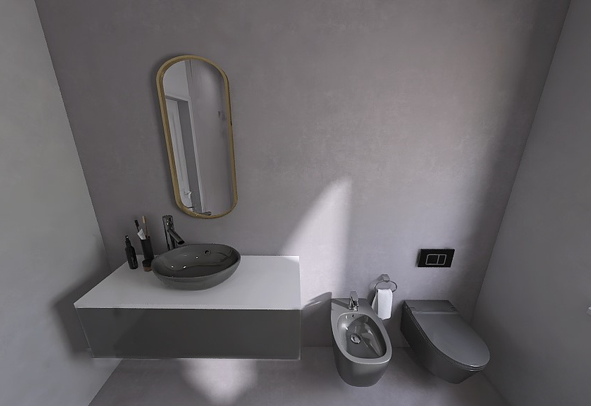 Bagno realizzato in resina, con superfici uniformi e facili da pulire.